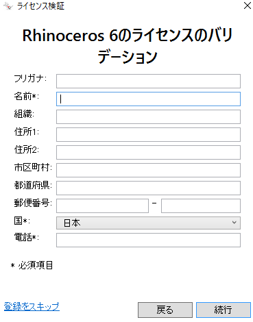 アイコンから起動時にウインドウが開き、氏名、メールアカウント、シリアルナンバーを聞かれます。