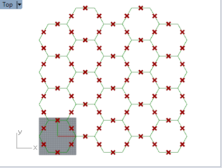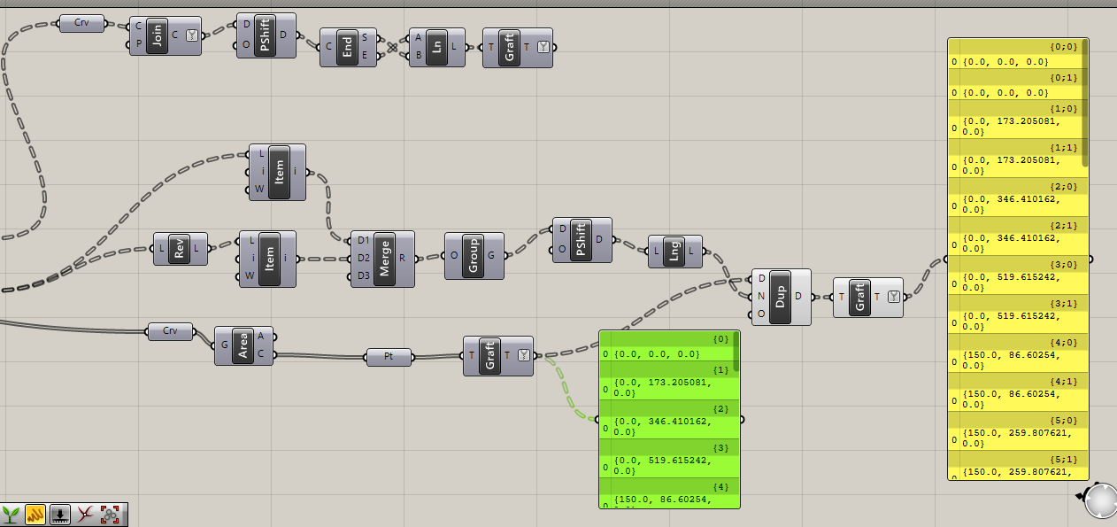 6角形の中心点をstep2-2のジオメトリのデータ構造に合わせて取り出す際に、DuplicateDataしているので、点が二倍になっています。果たしてこれは正しいのか、現時点では判断がつきかねますが、先に進めます。