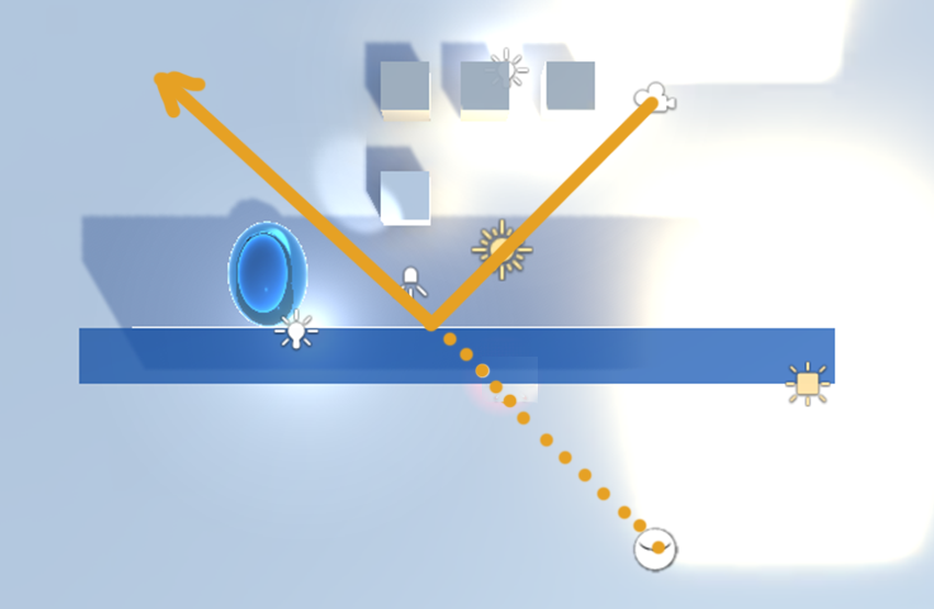 これによって、下記の絵のように、カメラに対して正しい反射が得られるようになりました。