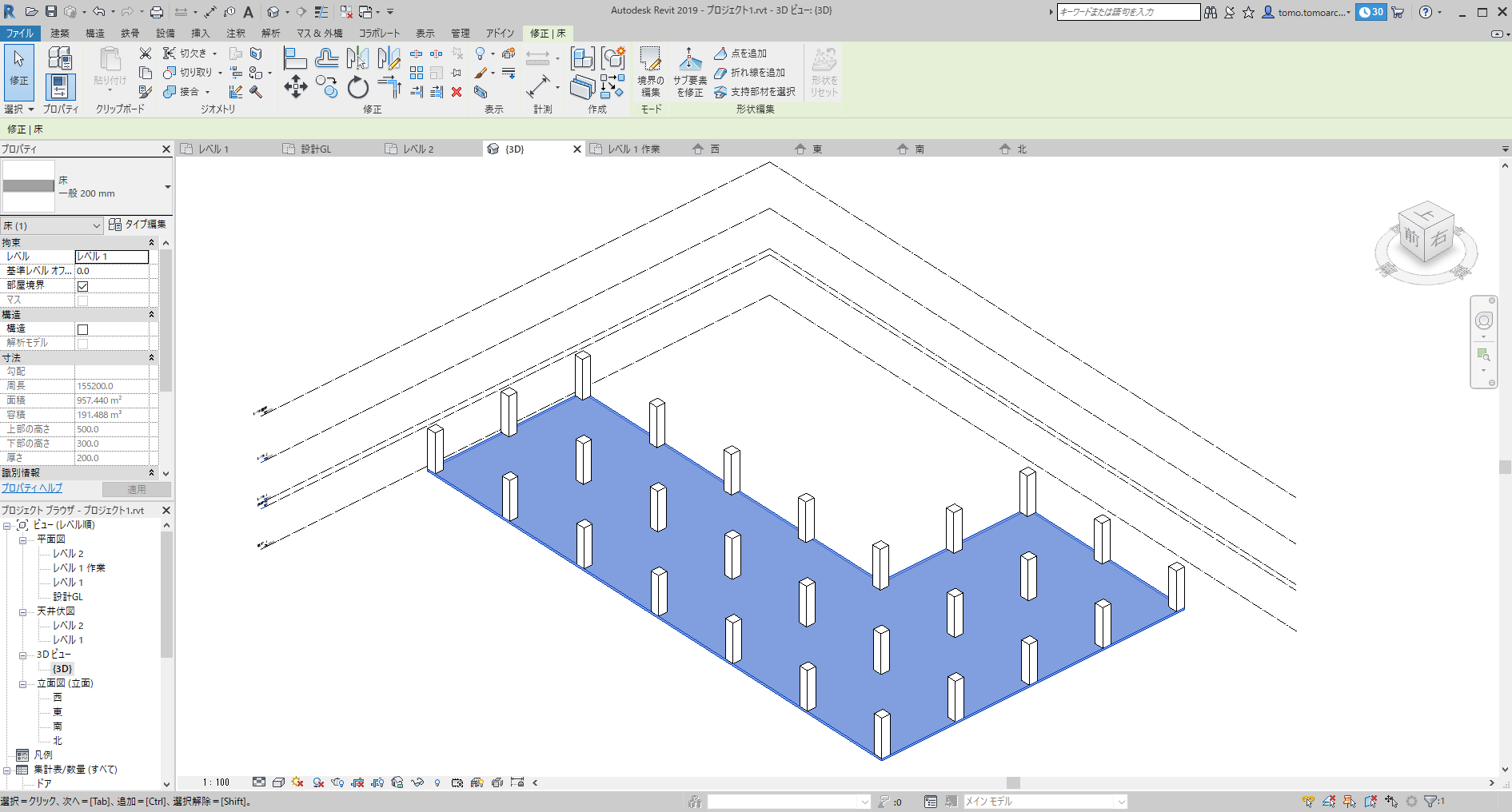 私は業務で若干使ったことがあるので大体の使い方は予想がついているのですが、かなり前の話なので、どうせなら最初から学びなおそうと思い、Lynda.comでチュートリアルを見ながら勉強をしようと思います。とりあえず、通り真、柱、床を置いてみました。