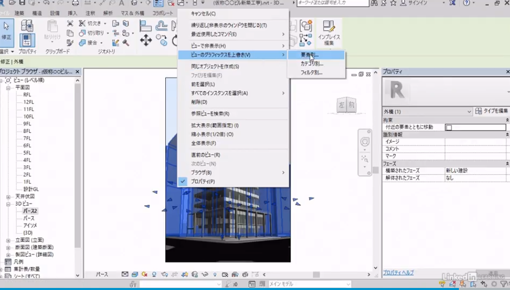 +architecture +BIM LinkedinLearningでREVITの基本操作とモデリングを学ぶ:勉強ノート01 2018-12-21 2019-09-03 tomo 3.ビューの作成方法の基本を理解する 既存の平面図はデフォルトで作成できないようにチェックボックスにチェックが入っている。既存ビューを複製しないのチェックボックスを外すことで、既存階の作業用平面図等を作成することが出来る。又、Ctrlキーを押すことで同時に複数の平面図を作成することもできる。 ビューをトリミング、トリミング領域を表示を使用するとトリミングができる、また、トリミング領域の編集で矩形以外のトリミング領域を描画することも可能。 断面を作成する時にはプロパティビューで前方クリップをクリックし奥行きを指定できる。 パースを作る際のカメラは置きたい高さの平面図ビューで作成・配置する。 ナビゲーションホイールを使用すると細かいビューの調整ができる。 グラフィックスの表示オプションからビューのスタイルが選べる。背景や影の設定など、かなり細かなパースの設定ができる模様。 周囲の建物の透明度を変えられる。選択状態でビューのグラフィックスを上書き。サーフェスの透明度をいじれる。 4.ビューをシートに配置する 表示タブにガイドグリッドというシートに配置する時にスナップできるメモリをつける事が出来る。ビューポート内の線分を移動でガイドグリッドにスナップ可能。 5.シート・パースの書き出し 挿入タブのイメージからイメージを選択してシートに配置ができる。更新された場合は隣のアイコンのイメージを管理から更新可能。 6.通り芯とレベルを作成する 寸法補助線の編集は後からもできる。 通り芯記号の編集 通り芯記号を編集する場合は、円のファミリ自体をいじる必要があるので、通り芯のファミリではなく、プロジェクトブラウザの注釈カテゴリーから円のファミリを探し出してそのサイズを変える必要がある。又、文字サイズも同じく円のファミリ編集でファミリの内部にあるラベルの文字サイズをいじる必要がある。この操作はかなり複雑なので動画を参考に繰り返しやり方を覚える。 レベル記号の編集 レベル記号の編集をする場合、通り芯記号と同じようにどのファミリが使用されているかを調べ、プロジェクトブラウザの注釈カテゴリーからそのファミリを探し出し編集するこ都が必要となる。やり方は複雑なのでこれも動画を参考に、もう一度復習する。 7.外壁を作成する 壁の外側が外部に来るためには時計回りで作成していけば良い。 8.カーテンウォールを作成する 境界と垂直グリッド実線で方立がちにできる。 固定間隔にした場合は、端に端数ができる。 固定数にした場合、インスタンスパラメーターで個数に等分してくれる。 最大間隔にするとそれ以下で等分してくれる。 マリオンのサイズに合わせて調整に✔でパネルのサイズをそろえる事が出来る。 次ページに続きます。 学生がREVITについて知っておきたい9つの事2019.8.9 BIMって聞いたことあるけど何?何が良いの?CADとどう違うの? って思った方!簡単にBIMの特徴について説明します! 簡単に説明すると、CADでは各図面の絵をバラバラに作図するのに対し、BIMでは3次元モデルとして情報を入力することで、その断面図や平面図、パース、面積表等をコンピューターが自動... 次ページ:マリオンのプロファイルを編集する 1 2 3 Facebook postはてブLINEPocketFeedly