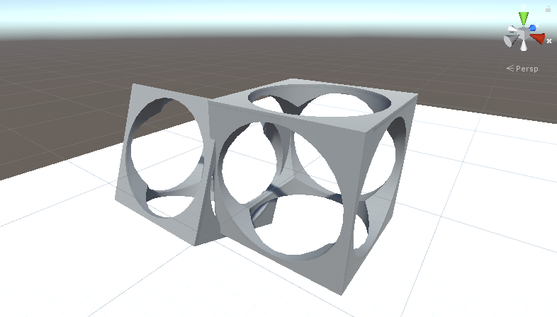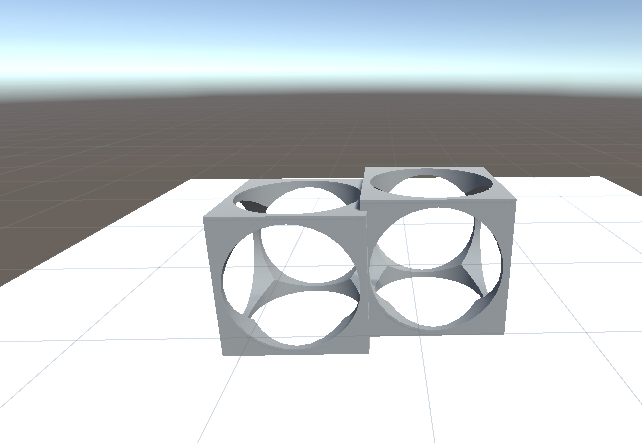そして、キューブの側面にももう1つキューブをばねでつなげてみました。