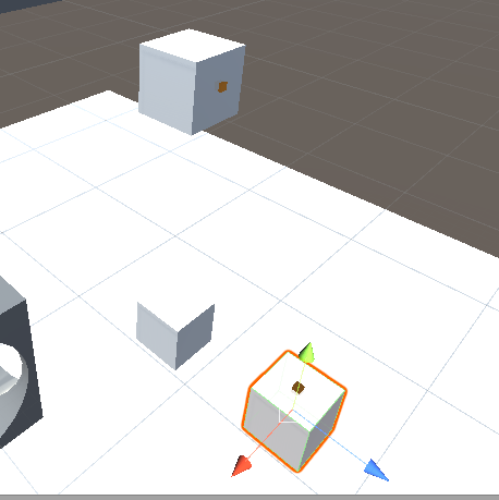 そこで、上のキューブの子オブジェクトとして同じ大きさのキューブを同じ座標に準備し新たにBoxColliderを付けてあげました。