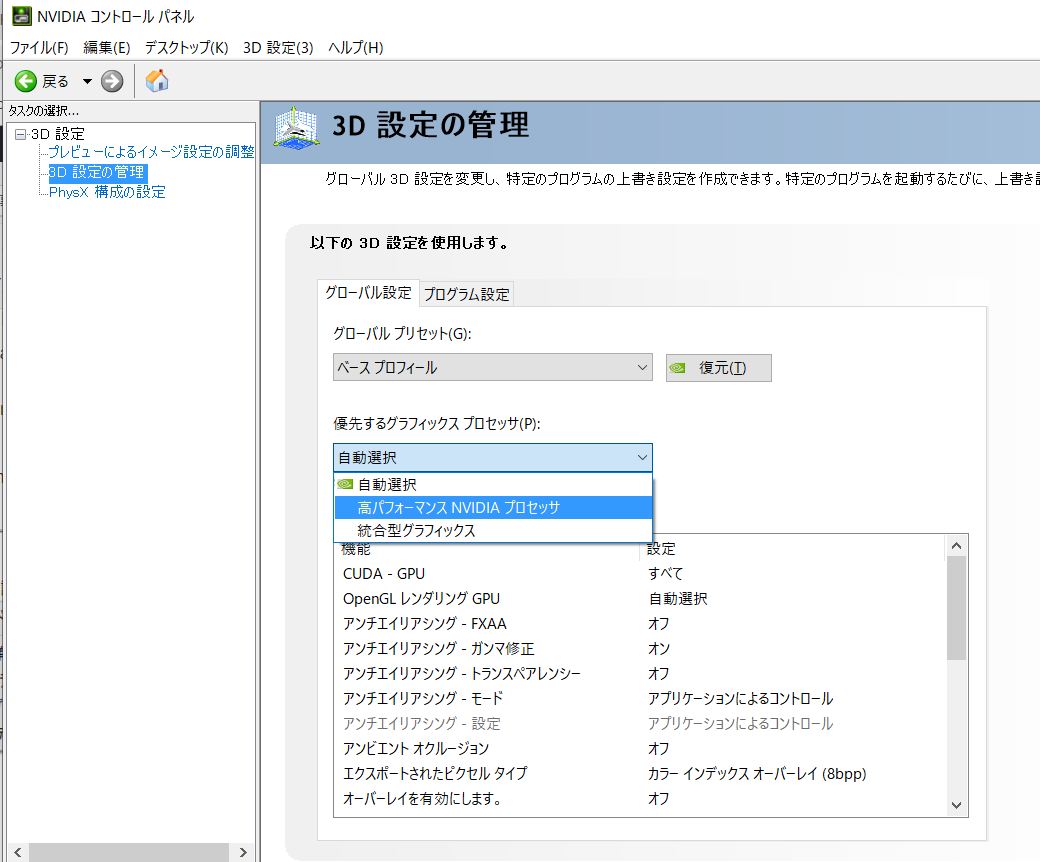 And also you can make sure the NVIDIA graphic card is enabled in the 3d option manager.