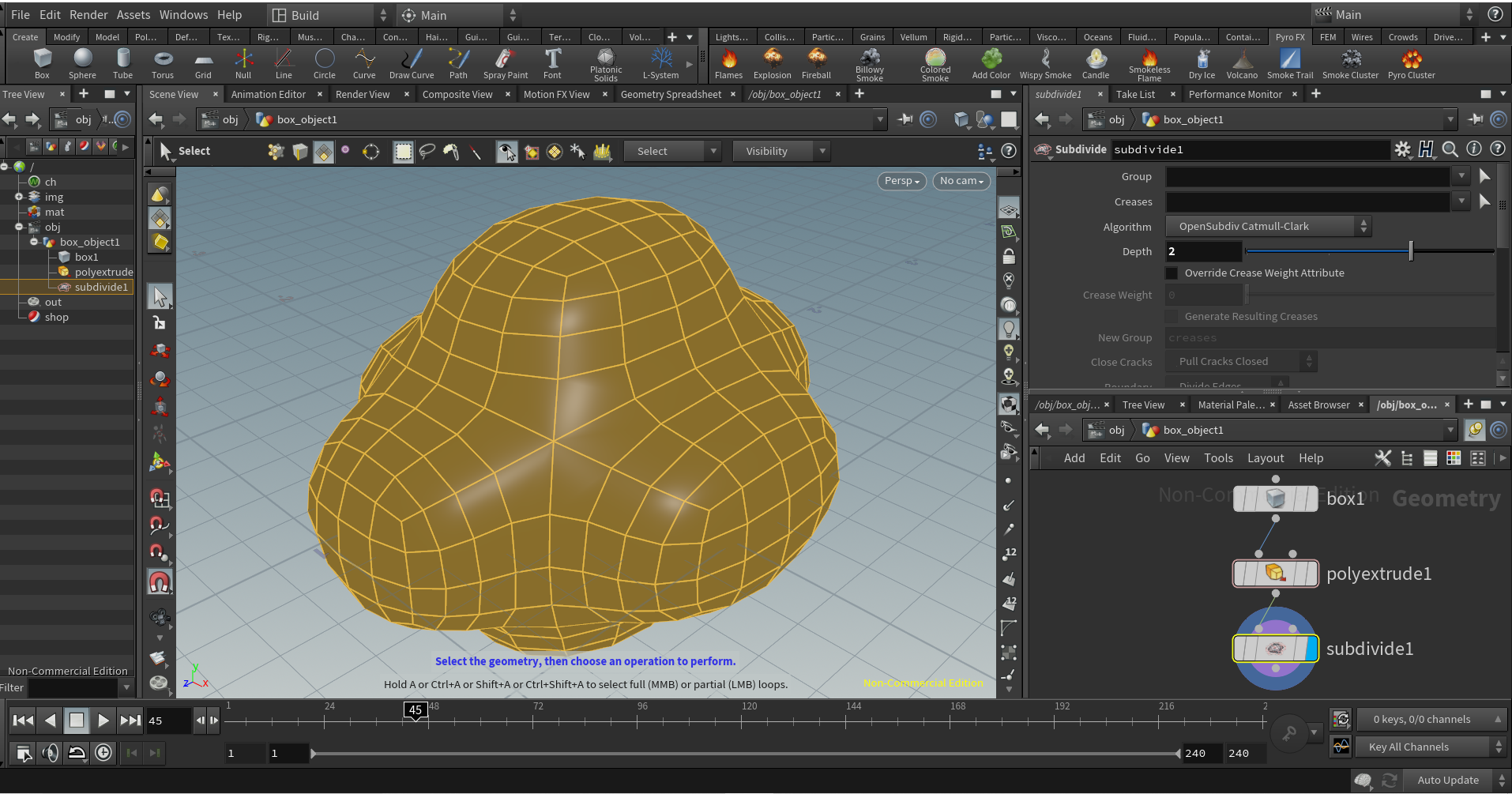 それではHoudiniの基本となるポリゴンモデリングについて詳しく見ていきましょう。
