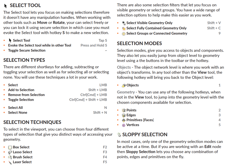 Houdini公式ドキュメントより:ホットキー一覧