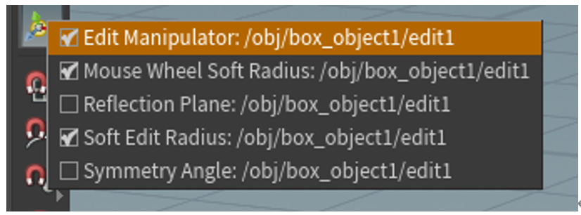 オブジェクトの各ポイント、エッジ、面(プリミティブ)、ブレイクポイント、頂点等を選ぶプルダウンメニューを開くようになっているので、