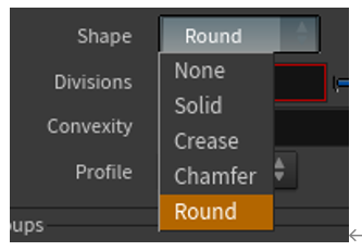 Distance で面取りの大きさ、 Divisionで分割数を調整できるようですね。
