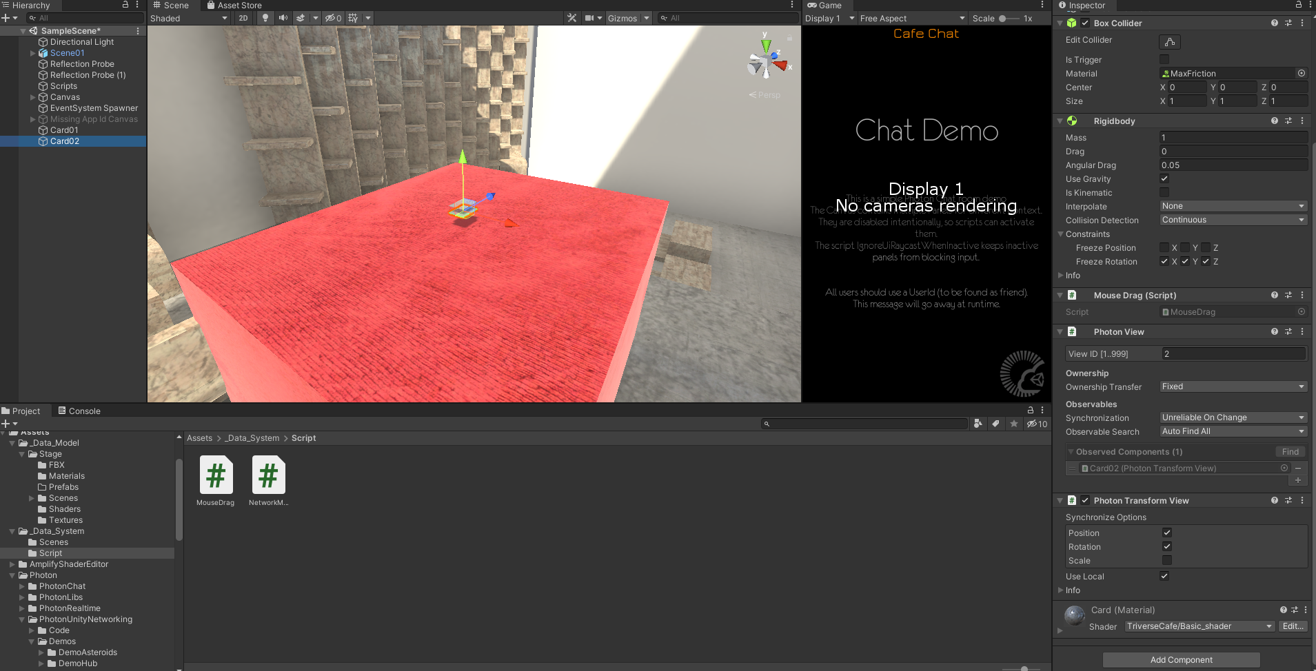 Resourceフォルダにはあらかじめ、カードオブジェクトにPhotonViewとPhotonTransformViewをくっつけて格納しておきます。
