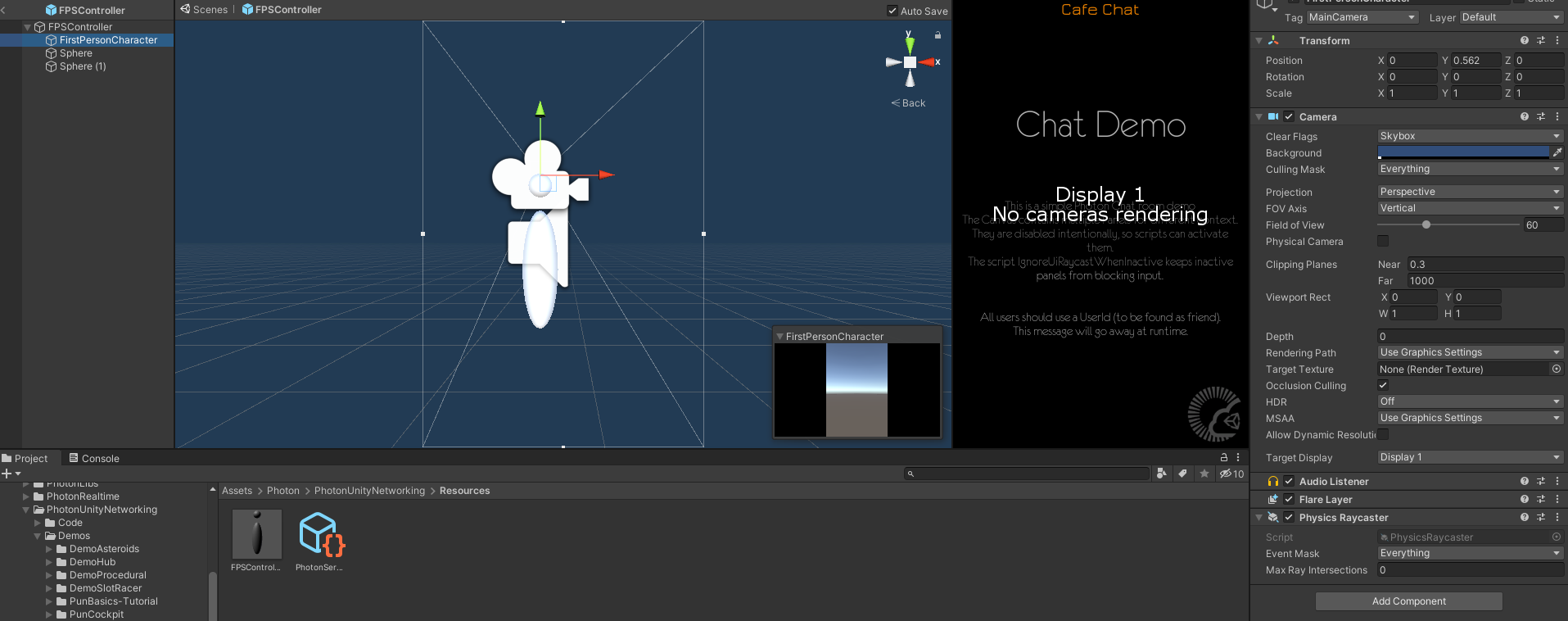 PhysicsRaycasterが必要なようなので、それをFirstPersonControllerのカメラに追加します。